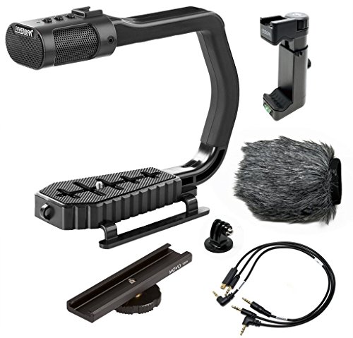• VERSATILE RIG: A lightweight grab-and-go camera mount with built in pro stereo mic, adjustable tripod screw mount, cold shoe mount, windsock, cables, and adapters. C-handle design is great for low angle shots